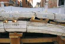 The paving on the streets and in the squares of Venice is largely composed of masegni, large stones made out of trachyte quarried in the Colli Euganei. Even the paving has historic significance.